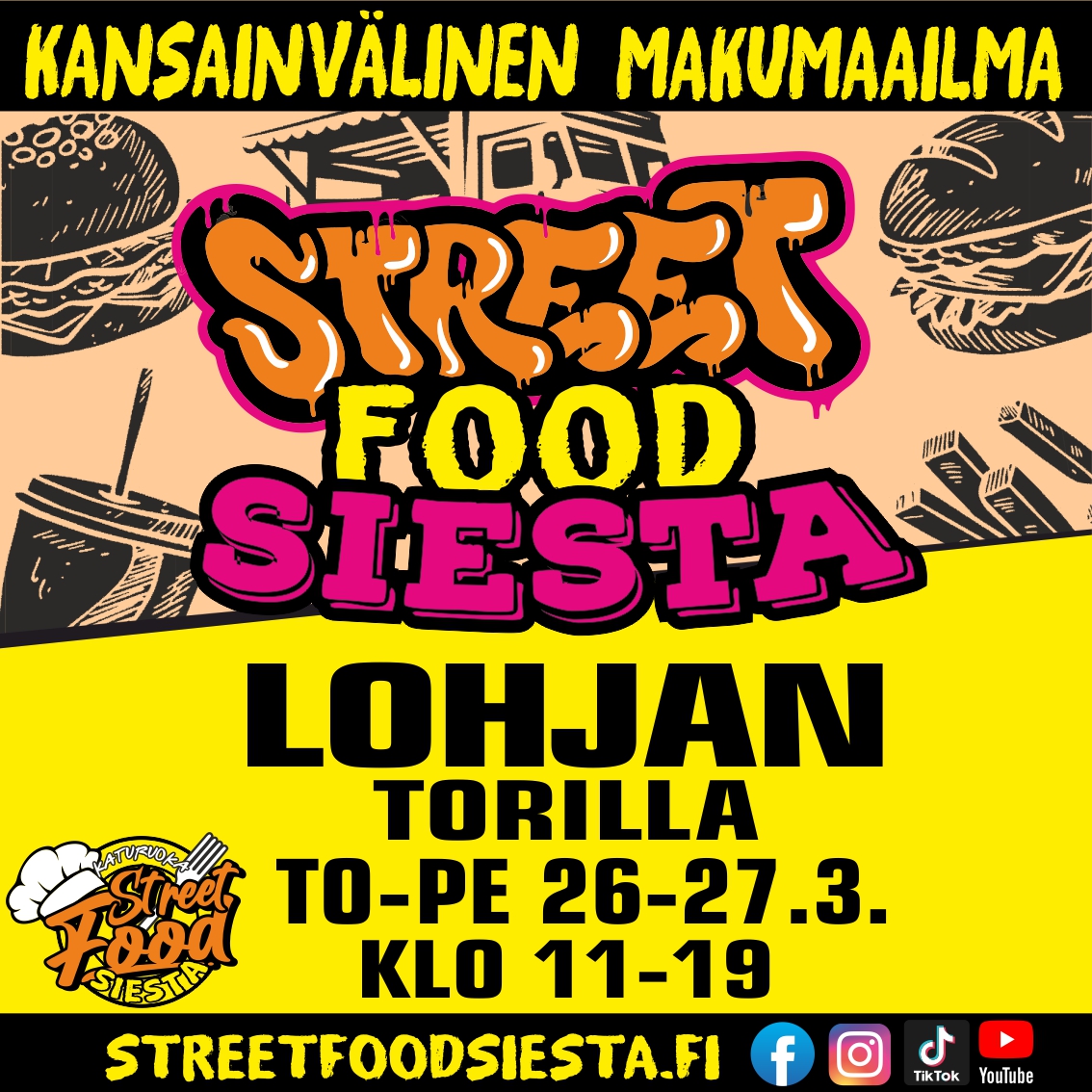 Tervetuloa herkuttelemaan.🤗🎉🎊 Annoksia saa myös mukaan tai paikanpäällä nautittavaksi.🫕🍲🤩 🇺🇲🇻🇪🇬🇷🇫🇮🇪🇺🇵🇷🇻🇳🇮🇩🇰🇭🇨🇵🇰🇷🇲🇽🇮🇳🇭🇺🇮🇹 Hauskahahmo paikalla klo 16:00-16:30 ja 17:00-17:30.(pe) paikka Lohjan tori.👈🤩 Klo 11-19👈pv 26-27.03.2026