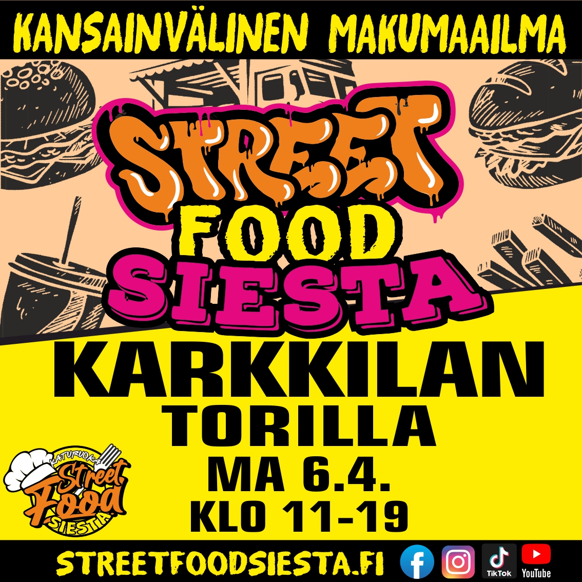 Tervetuloa herkuttelemaan.🤗🎉🎊 Annoksia saa myös mukaan tai paikanpäällä nautittavaksi.🫕🍲🤩 🇺🇲🇻🇪🇬🇷🇫🇮🇪🇺🇵🇷🇻🇳🇮🇩🇰🇭🇨🇵🇰🇷🇲🇽🇮🇳🇭🇺🇮🇹 Hauskahahmo paikalla klo 13:00-13:30 ja 14:00-14:30.(ma) paikka Karkkilan tori.👈🤩 Klo 11-19👈pv 6.4.2026