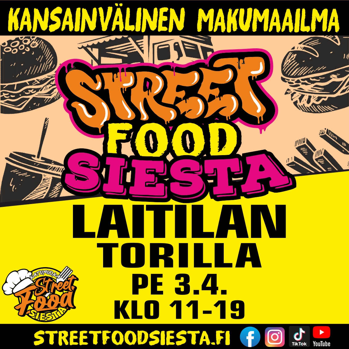 Tervetuloa herkuttelemaan.🤗🎉🎊 Annoksia saa myös mukaan tai paikanpäällä nautittavaksi.🫕🍲🤩 🇺🇲🇻🇪🇬🇷🇫🇮🇪🇺🇵🇷🇻🇳🇮🇩🇰🇭🇨🇵🇰🇷🇲🇽🇮🇳🇭🇺🇮🇹 Hauskahahmo paikalla klo 13:00-13:30 ja 14:00-14:30.(pe) paikka Laitilan tori.👈🤩 Klo 11-19👈pv 03.04.2026
