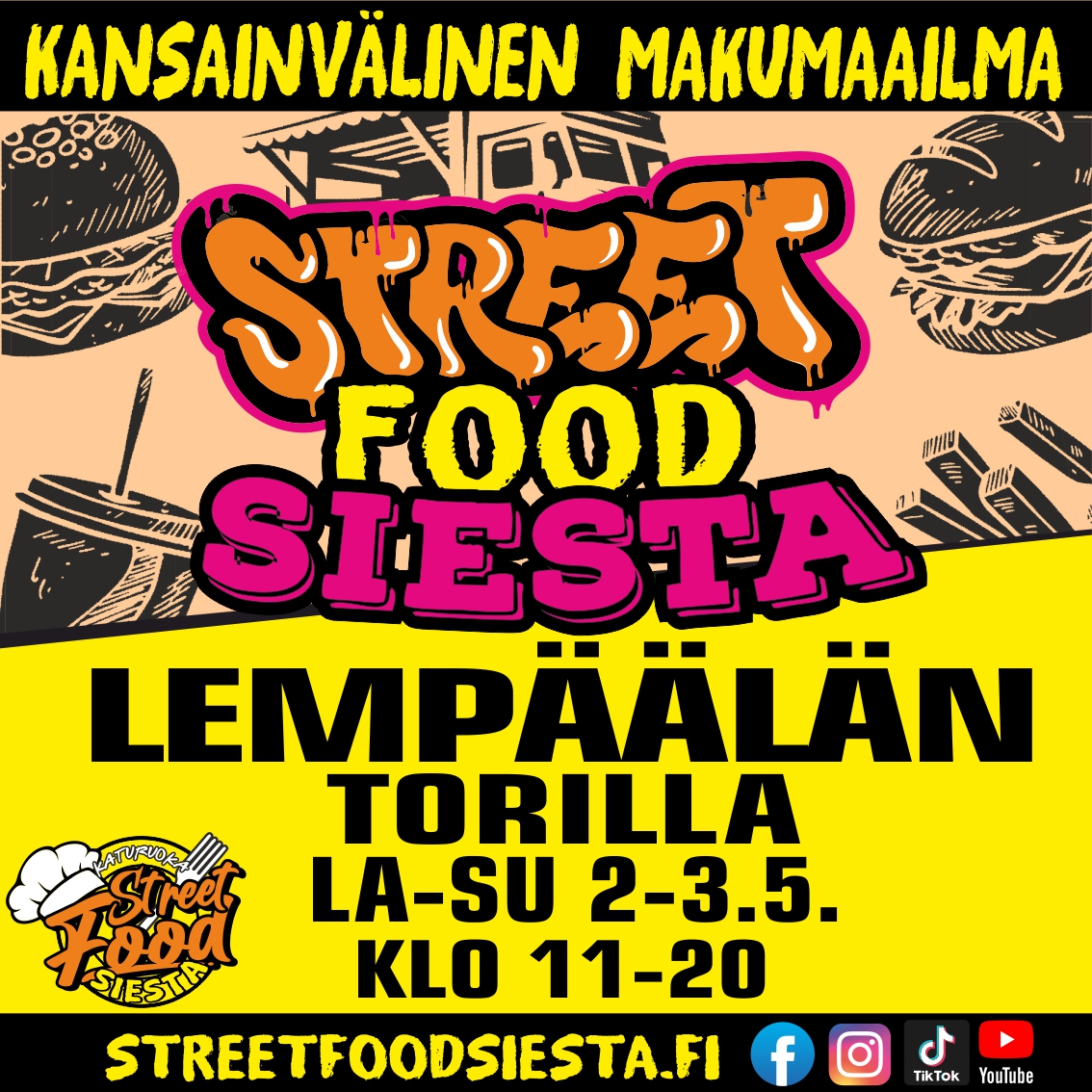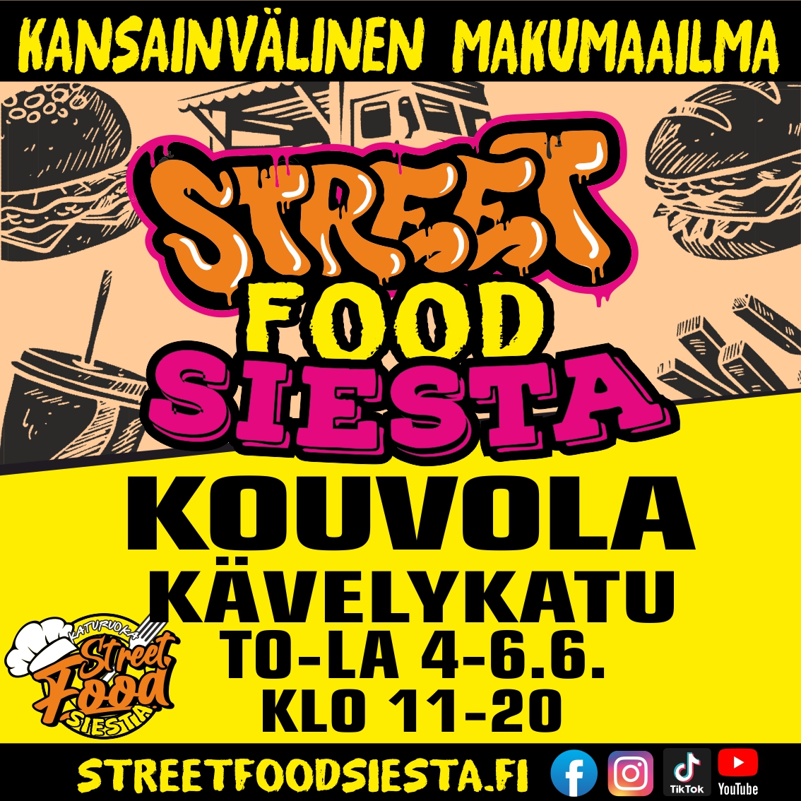 Tapahtuma paikka Kouvolan kävelykatu.👈 Klo (to-la) 11-20👈 pv 4-6.6.2026👈 Hauska hahmo paikalla (la) klo 13:00-13:30 ja 14:00-14:30. Tervetuloa makujenjuhla odottaa sinua.🤗🎉🎊 Annoksia saa myös mukaan, tai paikanpäällä nautittavaksi.👉Matkamaailman ympäri.👉 🇺🇲🇻🇪🇬🇷🇫🇮🇪🇺🇵🇷🇻🇳🇮🇩🇰🇭🇨🇵🇰🇷🇲🇽🇮🇳🇭🇺 #streetfood #streetfoodsiesta #katuruoka #streetfoodfestival #streetfoodfestivals