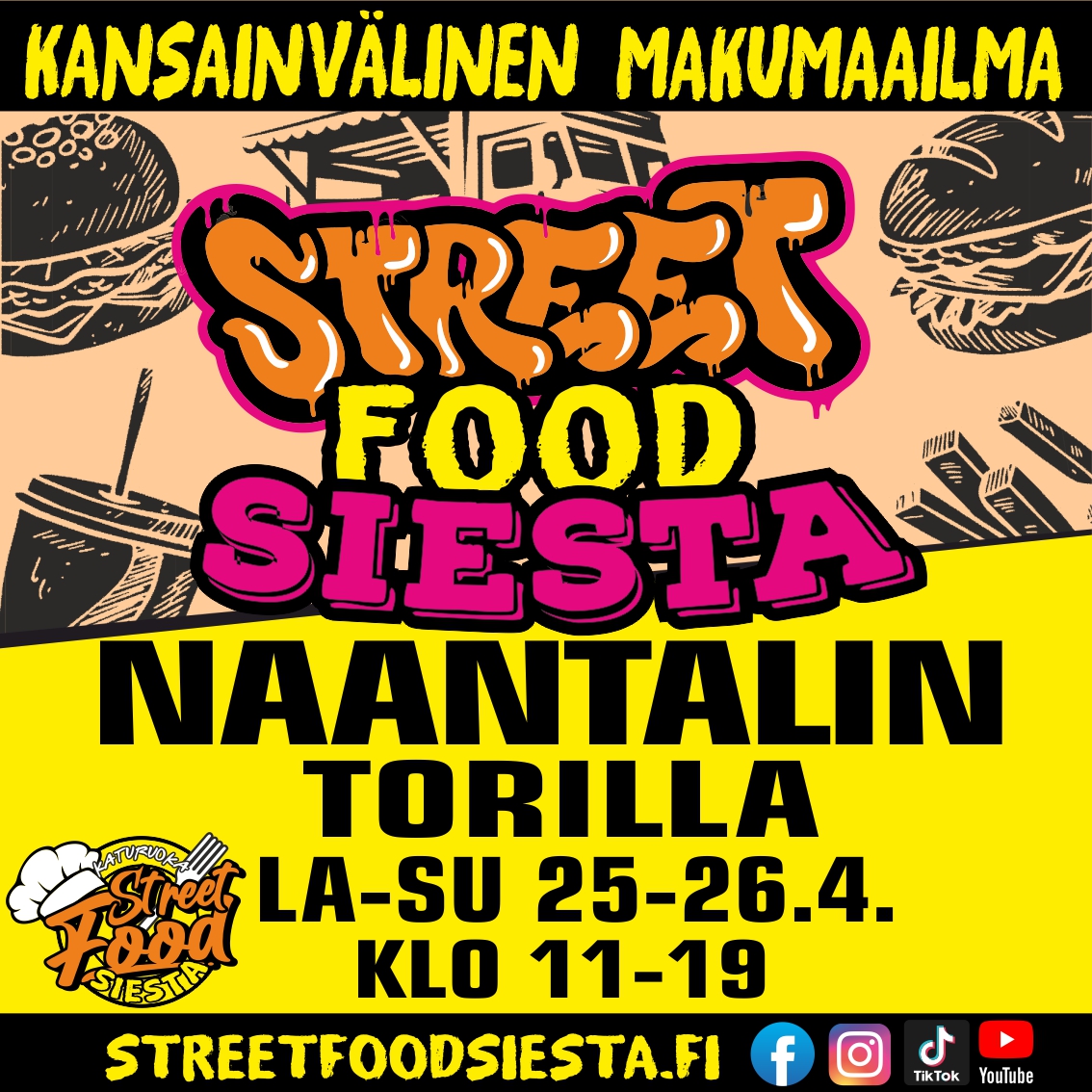 Tervetuloa herkuttelemaan.🤗🎉🎊 Annoksia saa myös mukaan tai paikanpäällä nautittavaksi.🫕🍲🤩 🇺🇲🇻🇪🇬🇷🇫🇮🇪🇺🇵🇷🇻🇳🇮🇩🇰🇭🇨🇵🇰🇷🇲🇽🇮🇳🇭🇺🇮🇹 Hauskahahmo paikalla klo 13:00-13:30 ja 14:00-14:30.(la) paikka Naantalin tori.🤩 Klo 11-19👈pv 25-26.4.2026