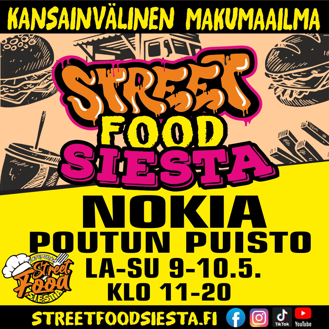 Tervetuloa herkuttelemaan.🤗🎉🎊 Annoksia saa myös mukaan tai paikanpäällä nautittavaksi.🫕🍲🤩 🇺🇲🇻🇪🇬🇷🇫🇮🇪🇺🇵🇷🇻🇳🇮🇩🇰🇭🇨🇵🇰🇷🇲🇽🇮🇳🇭🇺🇮🇹 Hauskahahmo paikalla klo 13:00-13:30 ja 14:00-14:30.(la) paikka Poutunpuisto Nokia.🤩 Klo 11-20👈pv 9-10.5.2026