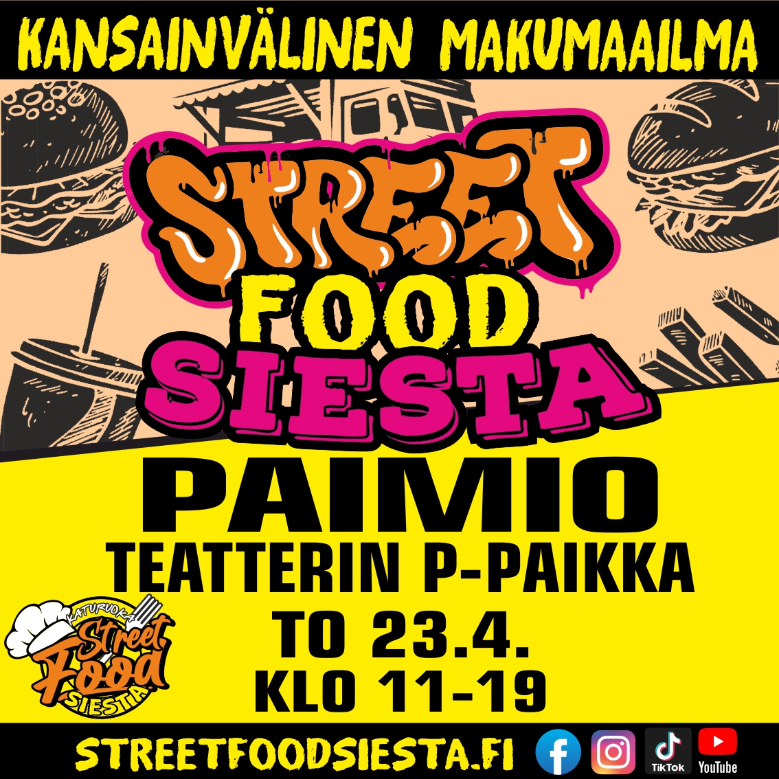 Tervetuloa herkuttelemaan.🤗🎉🎊 Annoksia saa myös mukaan tai paikanpäällä nautittavaksi.🫕🍲🤩 🇺🇲🇻🇪🇬🇷🇫🇮🇪🇺🇵🇷🇻🇳🇮🇩🇰🇭🇨🇵🇰🇷🇲🇽🇮🇳🇭🇺🇮🇹 Hauskahahmo paikalla klo 16:00-16:30 ja 17:00-17:30.(to) paikka Paimio teatterin p-paikka.🤩 Klo 11-19👈pv 23.4.2026