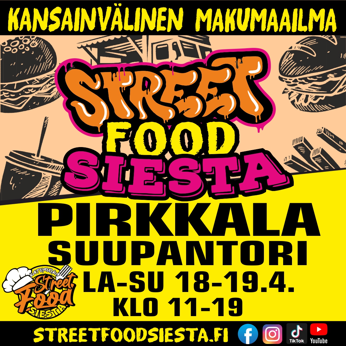 Tervetuloa herkuttelemaan.🤗🎉🎊 Annoksia saa myös mukaan tai paikanpäällä nautittavaksi.🫕🍲🤩 🇺🇲🇻🇪🇬🇷🇫🇮🇪🇺🇵🇷🇻🇳🇮🇩🇰🇭🇨🇵🇰🇷🇲🇽🇮🇳🇭🇺🇮🇹 Hauskahahmo paikalla klo 13:00-13:30 ja 14:00-14:30.(la) paikka Pirkkala Suupaan tori.🤩 Klo 11-19👈pv 18-19.4.2026 Huvimylly ei mahdu alueelle pahoittelut tästä!🙏