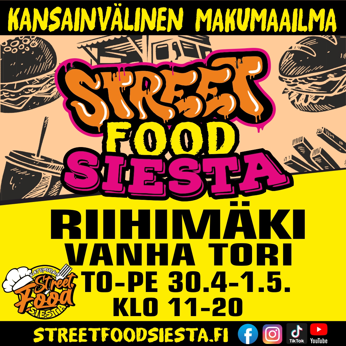 Tervetuloa herkuttelemaan.🤗🎉🎊 Annoksia saa myös mukaan tai paikanpäällä nautittavaksi.🫕🍲🤩 🇺🇲🇻🇪🇬🇷🇫🇮🇪🇺🇵🇷🇻🇳🇮🇩🇰🇭🇨🇵🇰🇷🇲🇽🇮🇳🇭🇺🇮🇹 Hauskahahmo paikalla klo 13:00-13:30 ja 14:00-14:30.(pe) paikka Riihimäen vanha tori.🤩 Klo 11-20👈pv 30.4-1.5.2026