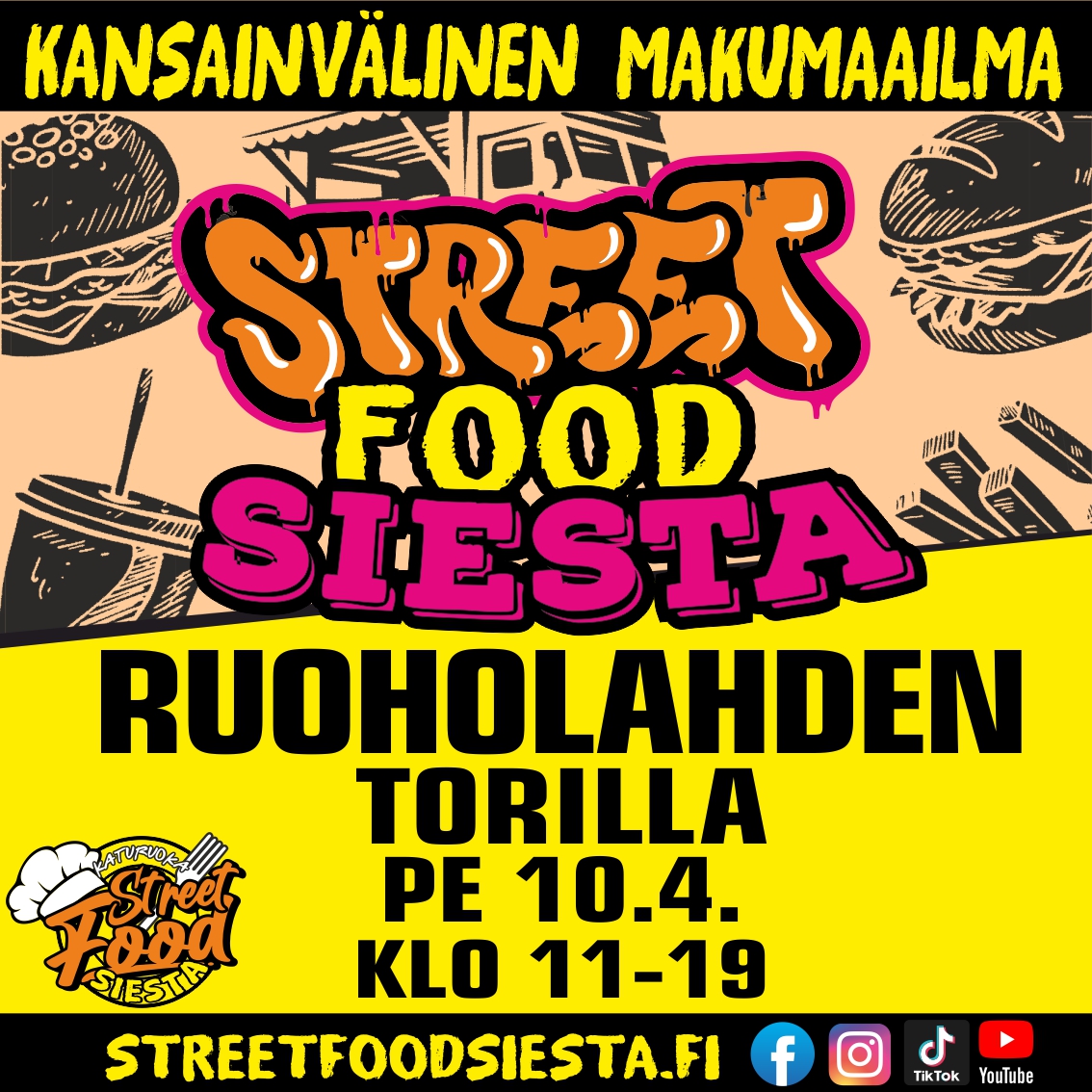 Tervetuloa herkuttelemaan.🤗🎉🎊 Annoksia saa myös mukaan tai paikanpäällä nautittavaksi.🫕🍲🤩 🇺🇲🇻🇪🇬🇷🇫🇮🇪🇺🇵🇷🇻🇳🇮🇩🇰🇭🇨🇵🇰🇷🇲🇽🇮🇳🇭🇺🇮🇹 Hauskahahmo paikalla klo 16:00-16:30 ja 17:00-17:30.(pe) paikka Ruoholahden tori.👈🤩 Klo 11-19👈pv 10.4.2026