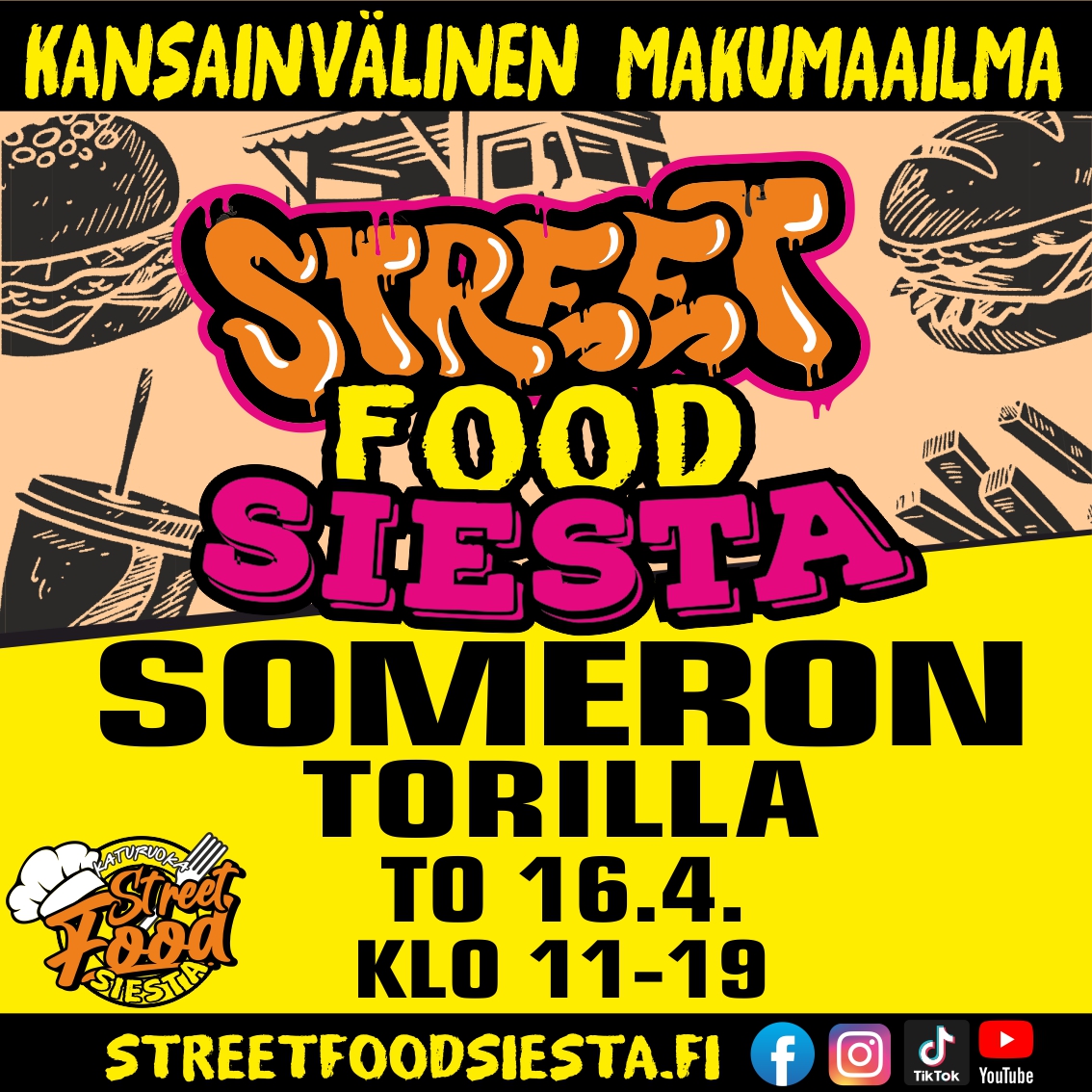 Tervetuloa herkuttelemaan.🤗🎉🎊 Annoksia saa myös mukaan tai paikanpäällä nautittavaksi.🫕🍲🤩 🇺🇲🇻🇪🇬🇷🇫🇮🇪🇺🇵🇷🇻🇳🇮🇩🇰🇭🇨🇵🇰🇷🇲🇽🇮🇳🇭🇺🇮🇹 Hauskahahmo paikalla klo 16:00-16:30 ja 17:00-17:30.(to) paikka Somero tori👈🤩 Klo 11-19👈pv 16.4.2026